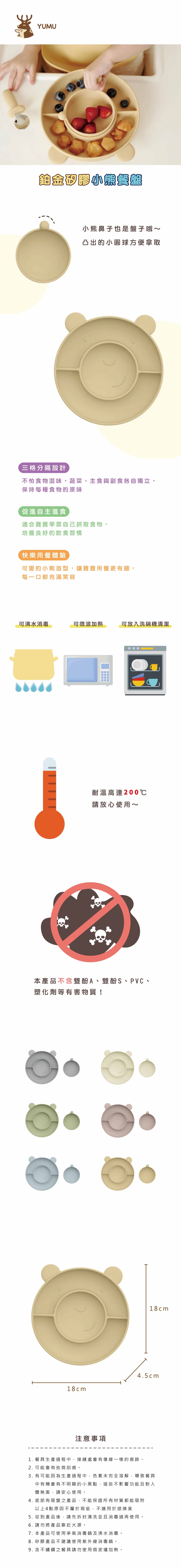 【YUMU】鉑金矽膠小熊餐盤(6色可選)|可沸水消毒、可微波加熱、可放入洗碗機清潔、耐高溫220°C