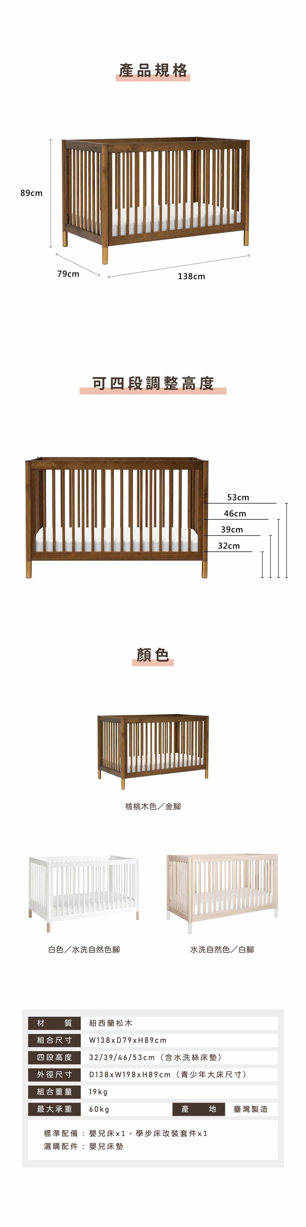 ✔ 嬰兒床四段可調床架高度