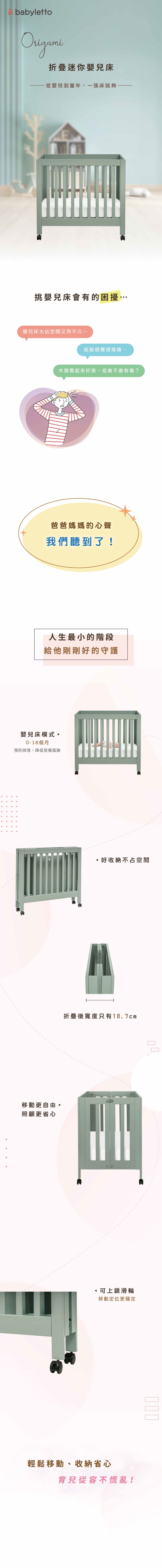 【美國 Babyletto】Origami 折疊迷你嬰兒床(6色可選)