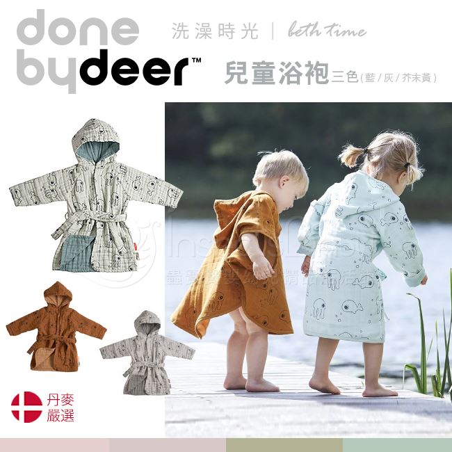 丹麥Done by deer 兒童浴袍可愛鯨魚圖案,100%純棉質地柔軟堅韌,透氣性好適合寶貝柔嫩肌膚。