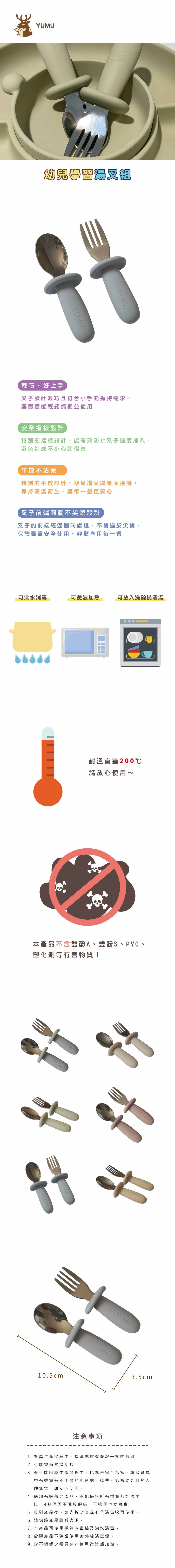 【YUMU】幼兒學習湯叉組(6色可選)|輕巧、好上手、安全擋板設計、平放不沾桌