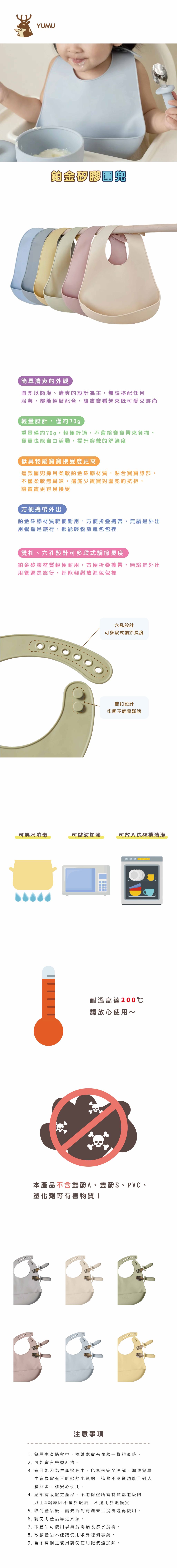 【YUMU】鉑金矽膠圍兜(6色可選)|輕量圍兜、多段式可調節、輕鬆清潔