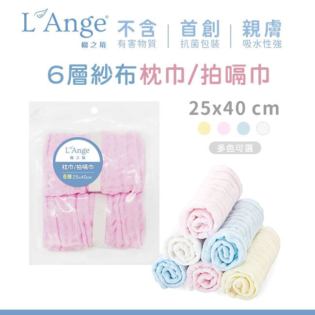 美國L'Ange棉之境六層紗布編織而成,獨特水洗工藝多功能用途,除了當枕巾以外還可以當拍嗝巾使用。