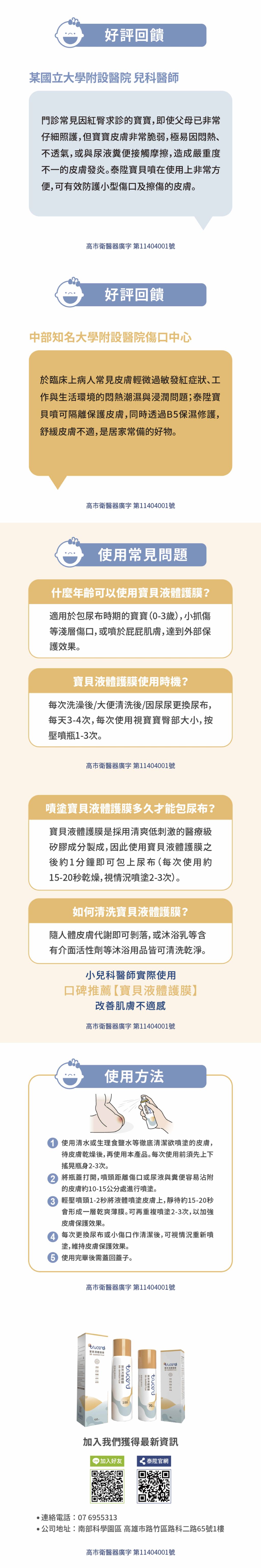 4.每次更換尿布或小傷口作清潔後,可視情況重新噴塗,維持皮膚保護效果。